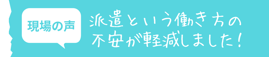 現場の声派遣という働き方の不安が軽減しました!