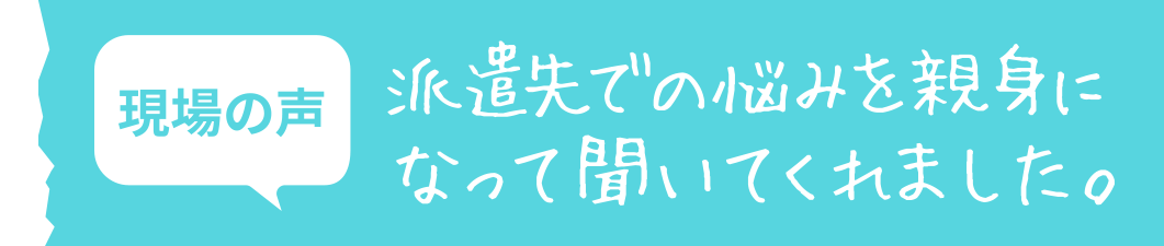 現場の声派遣先での悩みを親身になって聞いてくれました。