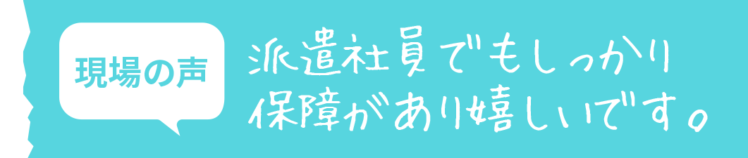 現場の声派遣社員でもしっかり保障があり嬉しいです。